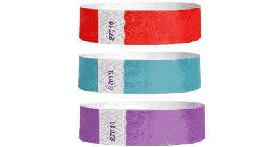 Tyvek wristbands are used for short term events. In the sports and entertainment world, they are commonly used in admission processes for single-day events. These include games and matches, short tournaments, and more. Each band features a secure adhesive which prevents tampering and accidental removal. Tyvek sports wristbands are waterproof and can be used indoors and outdoors no matter the weather.